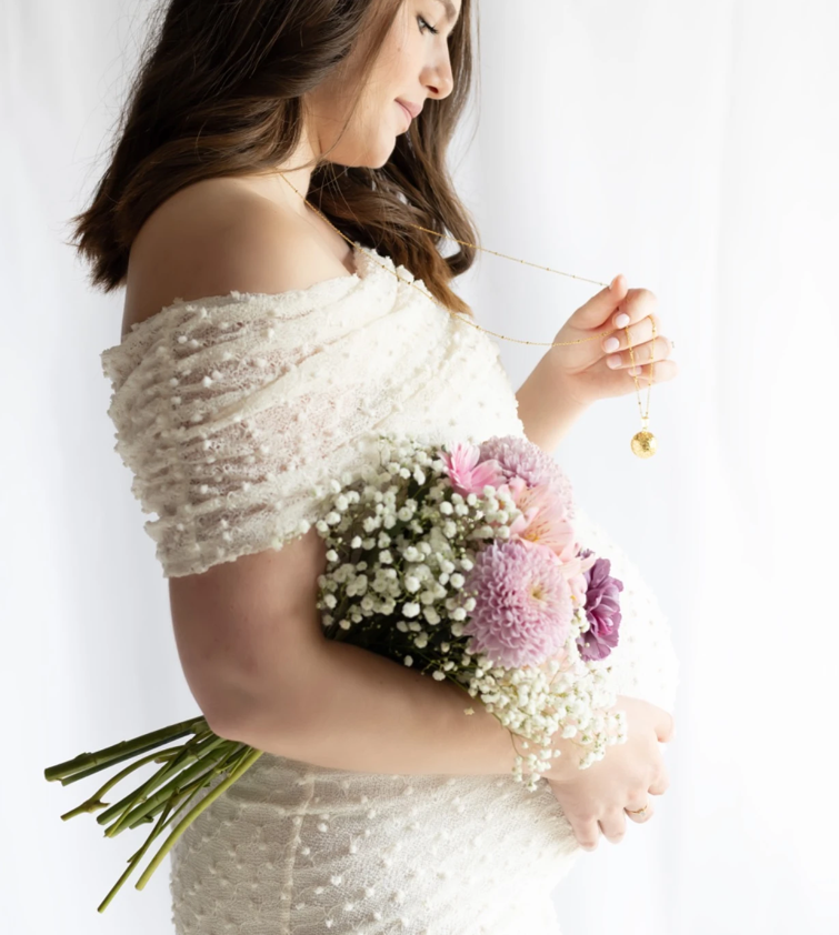 Ce délicat bijou est aussi un accessoire qui met en valeur le ventre de la future maman et ses vêtements de maternité.