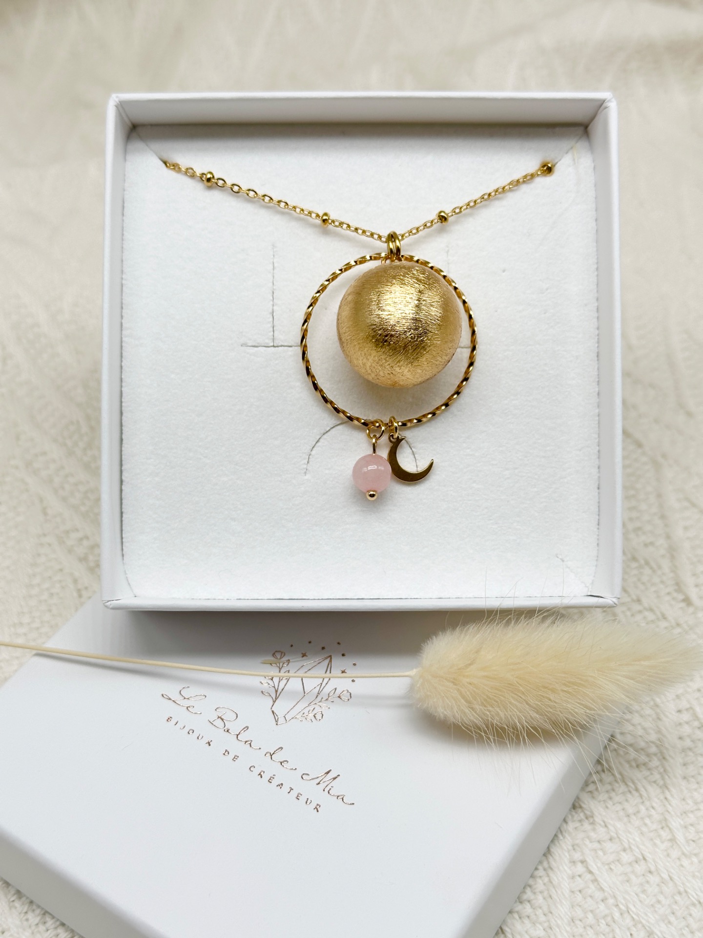 Sa particularité ? Un petit pendentif rond qui émet un doux scintillement (surnommé "L'appel des Anges") au rythme des mouvements de la future maman. Ce petit son de clochette calmerait bébé tout au long de la grossesse et serait même capable de le reconnaître après sa naissance.