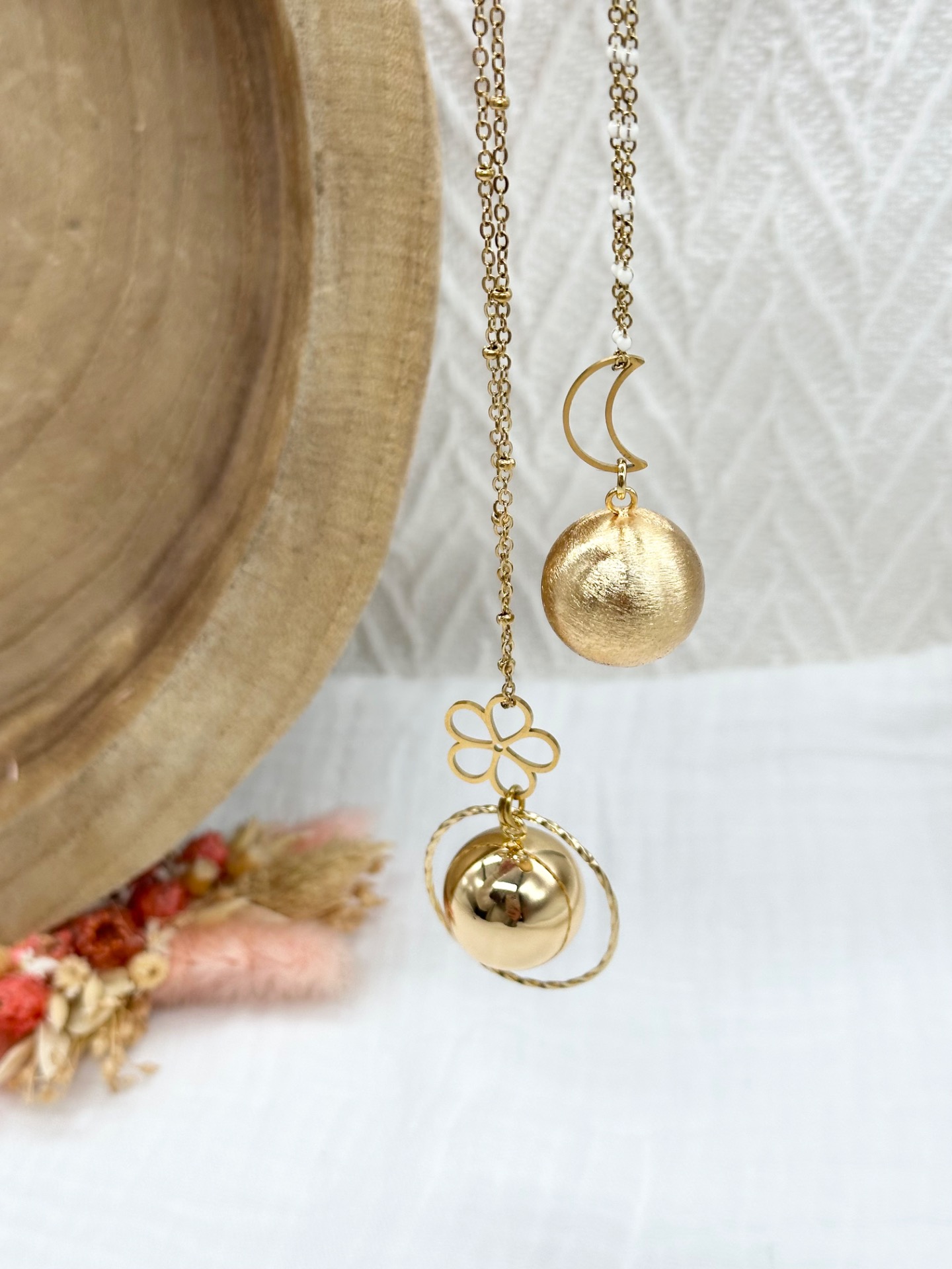 Originaire d'Indonésie et à l'origine en argent, le bola de grossesse est un long sautoir destiné aux femmes enceintes.