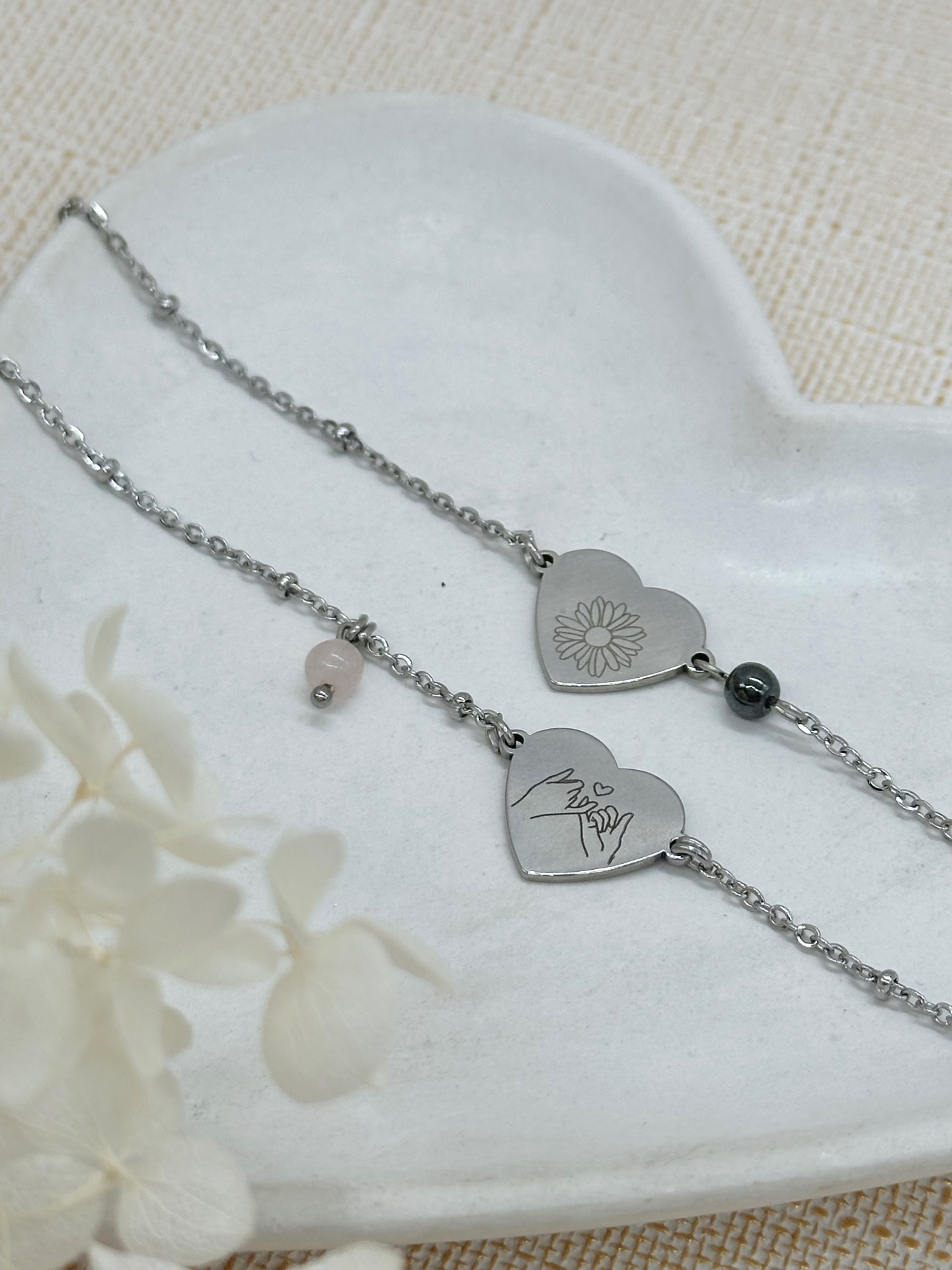Bracelet Argent avec pendentif en forme de cœur gravé et pierre