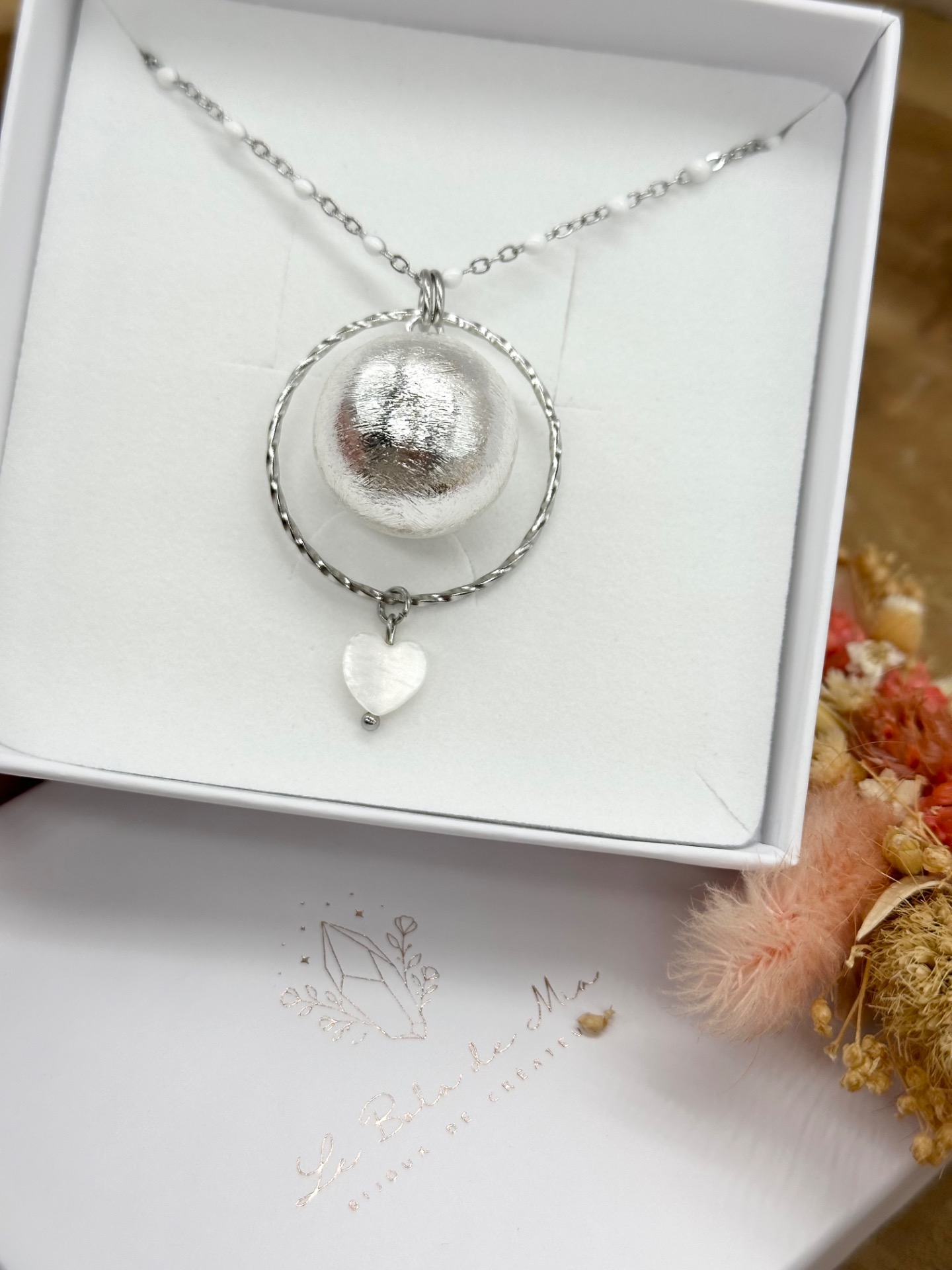 Envoi soigné dans un écrin de qualité, avec une lingette nettoyante type peau de chamois pour conserver l'éclat de votre bola le plus longtemps possible ainsi que nos conseils d'entretien, une carte de visite et une carte explicative "Made with Love".