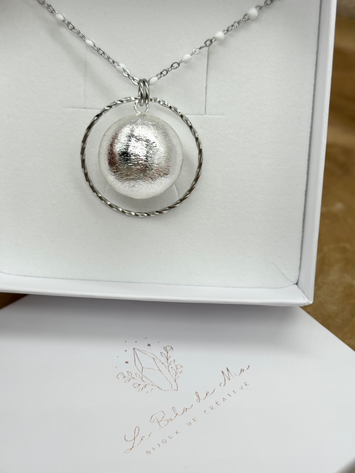 Envoi soigné dans un écrin de qualité, avec une lingette nettoyante type peau de chamois pour conserver l'éclat de votre bola le plus longtemps possible ainsi que nos conseils d'entretien, une carte de visite et une carte explicative "Made with Love".