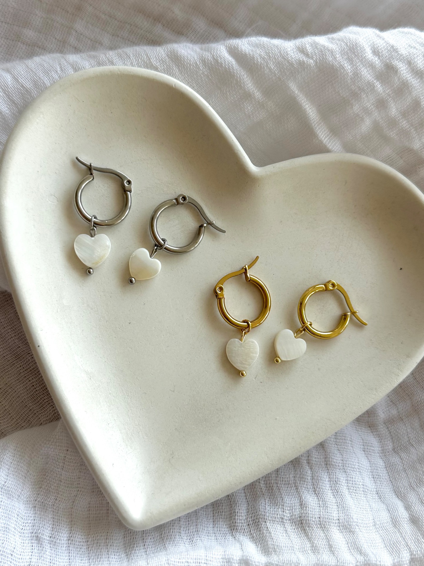 Paire de boucles d'oreilles en acier inoxydable composé de deux petits coeurs nacrés