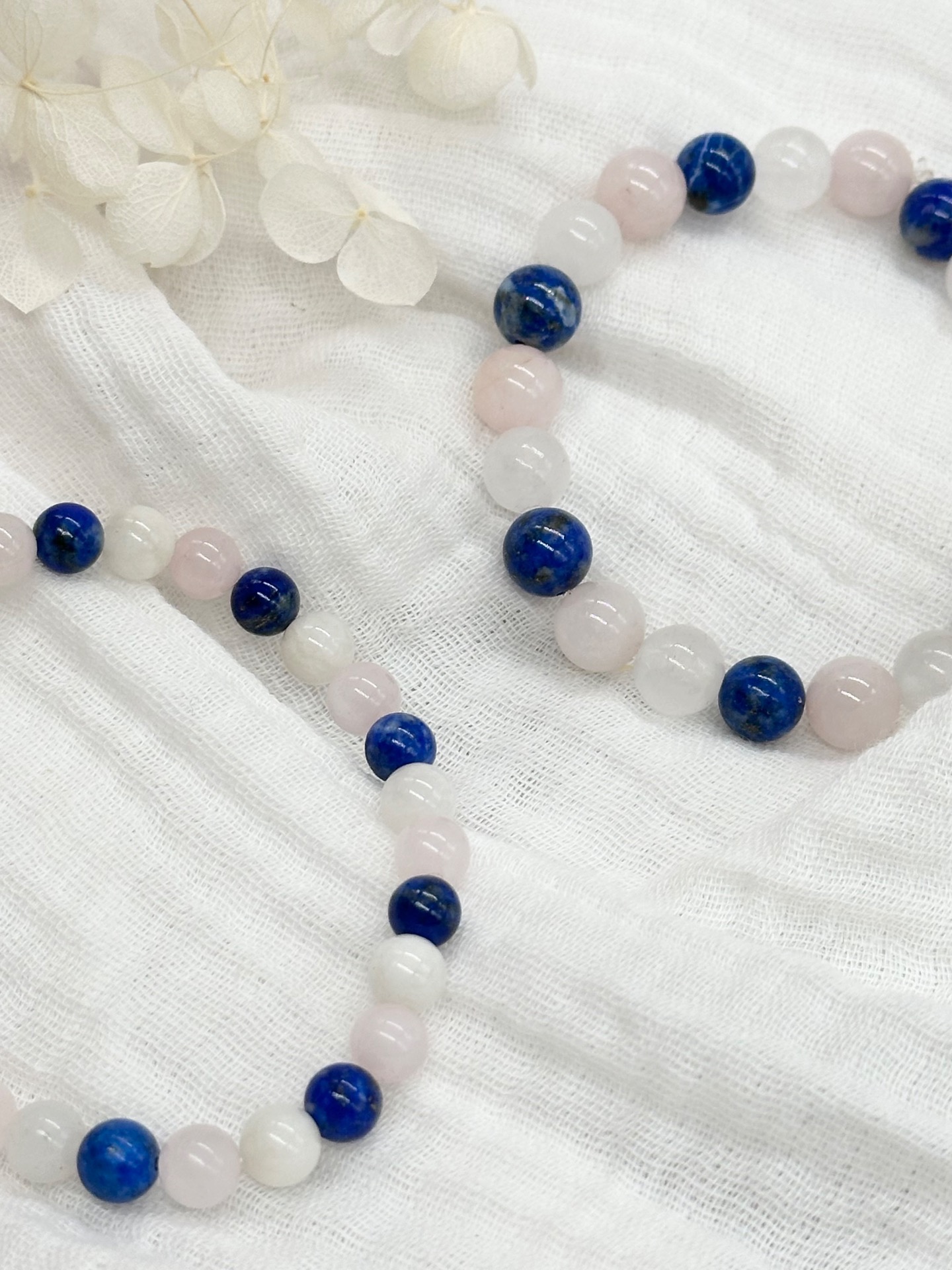 Mélange de pierres de Lapis-Lazuli, Quartz Rose et Pierre de Lune.