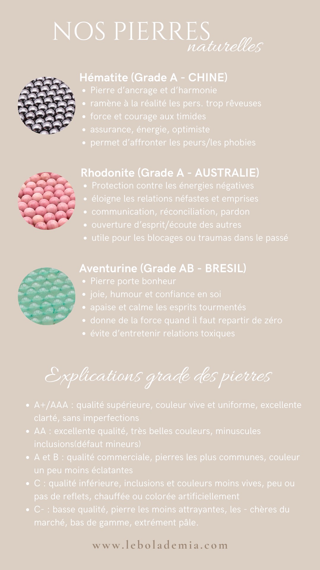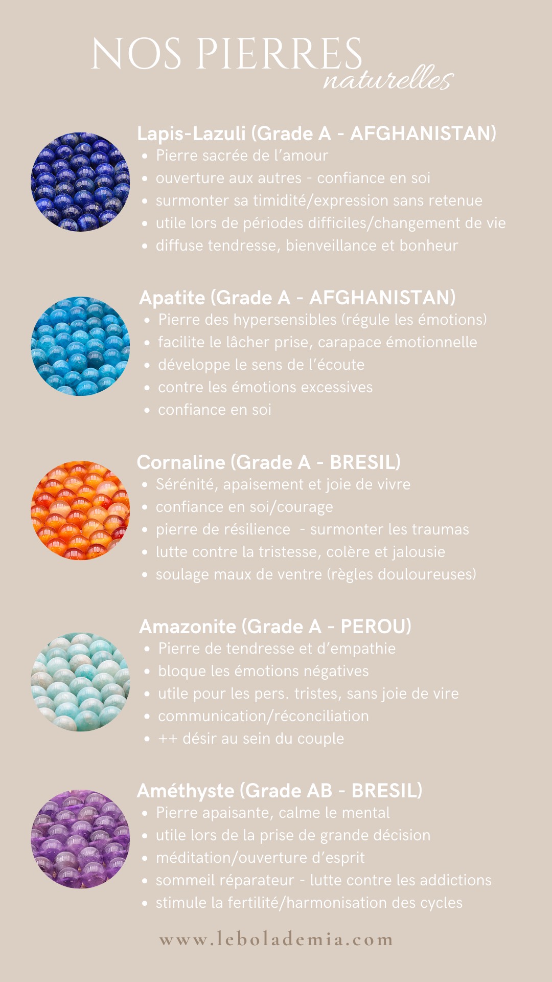 L'utilisation des pierres naturelles = Lithothérapie est une pratique de bien-être non reconnue scintifiquement. Nos bijoux ne remplacent en aucun cas un traitement médical ou un avis de professionnel de santé.