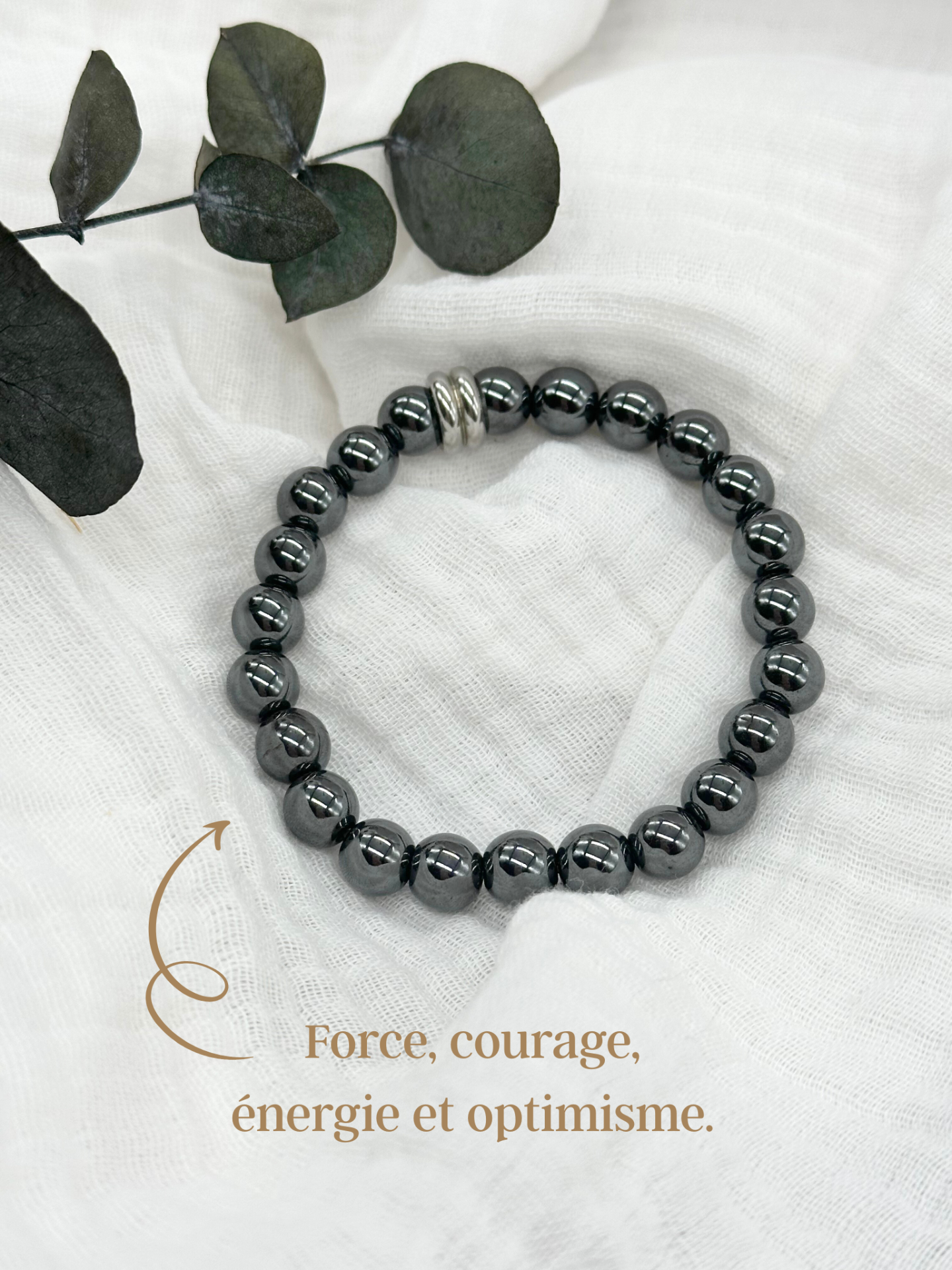 Bracelet composé entièrement de perles d'Hématite : pierre d'ancrage et d'harmonie, force et courage pour les personnes timides, assurance, énergie, optimisme.