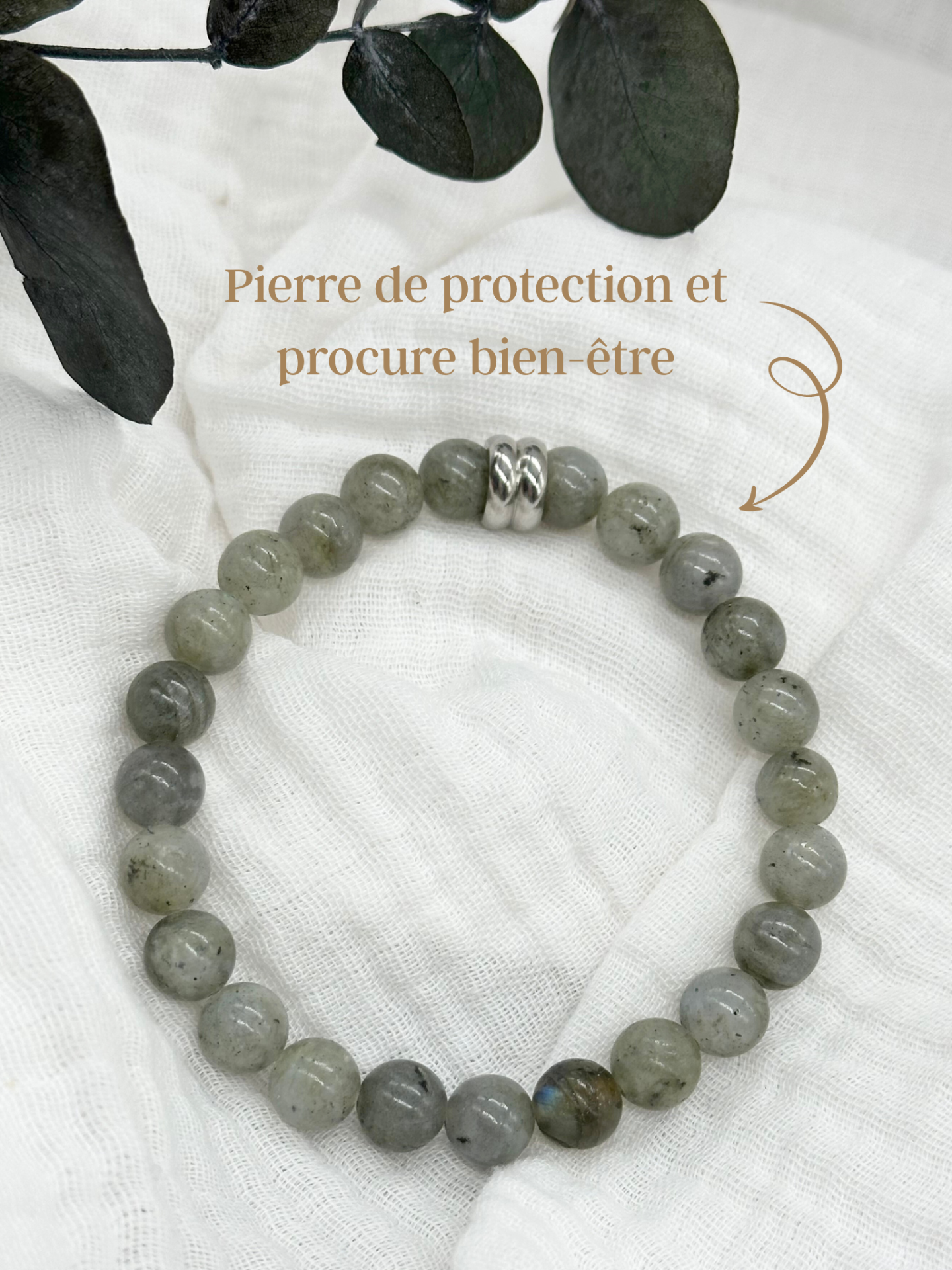 Bracelet composé entièrement de perles de Labradorite : pierre de protection, lutte contre les angoisses, les peurs et anxiété. Procure bien-être et calme.