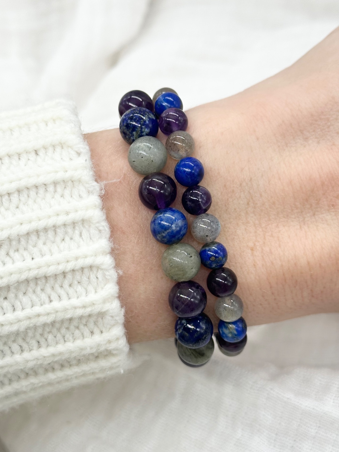 Mélange de pierres d'Améthyste, de Lapis-Lazuli et de Labradorite.