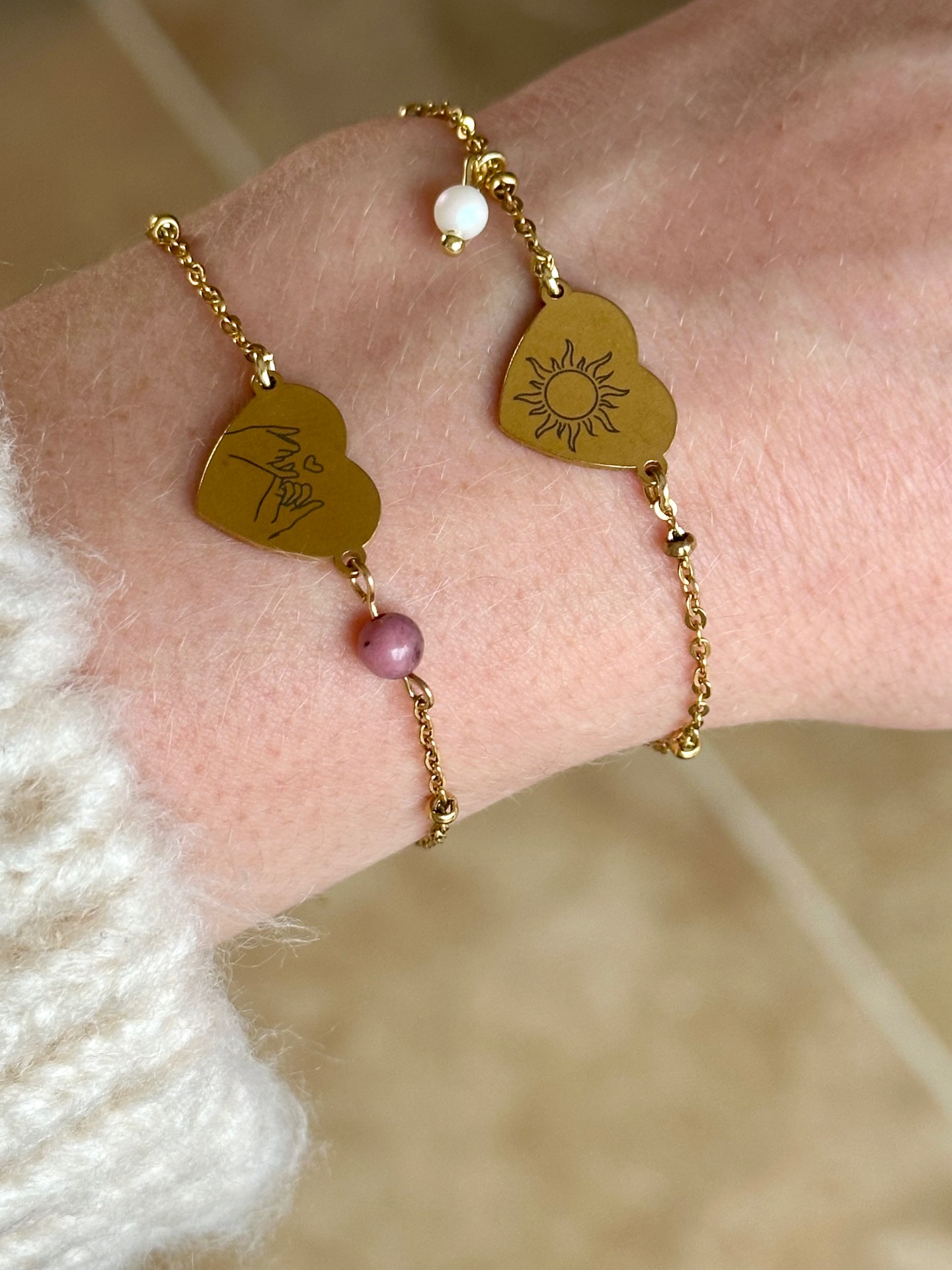 Bracelet en acier inoxydable avec un pendentif en forme de coeur de 15 mm gravé ainsi qu'une pierre naturelle au choix.